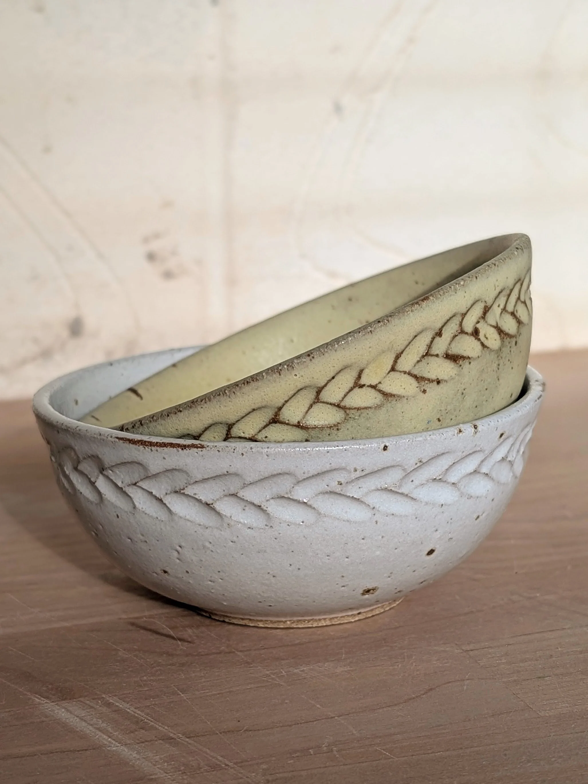 Handmade stoneware cups, made with a super flecked clay and glazed in a shiny cherry red. I have hand-carved a subtle wheat stripe pattern into these tumblers for a nice textural feel in use. They are thrown thick enough to use for both hot and cold drinks and are dishwasher safe. Handmade on the potter’s wheel in Margate, U.K.
